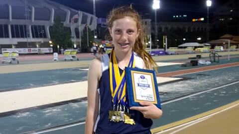 She letters in track, soccer, and cross-country, and is very accomplished in all three.